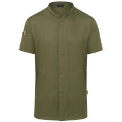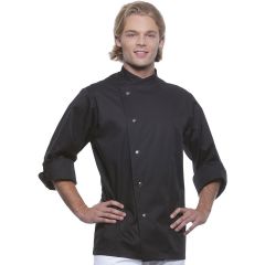 200 g / m² Εμπρόσθιο τμήμα: 65% Πολυεστέρας, 35% Βαμβάκι (Twill) Πίσω τμήμα: 100% Πολυεστέρας (Jersey) Μοντέρνο μακρυμάνικο πουκάμισο για μαγείρεμα Αριστερά κοντό μανίκι με μπορντούρα στην τσέπη Πλένεται στους 60°C