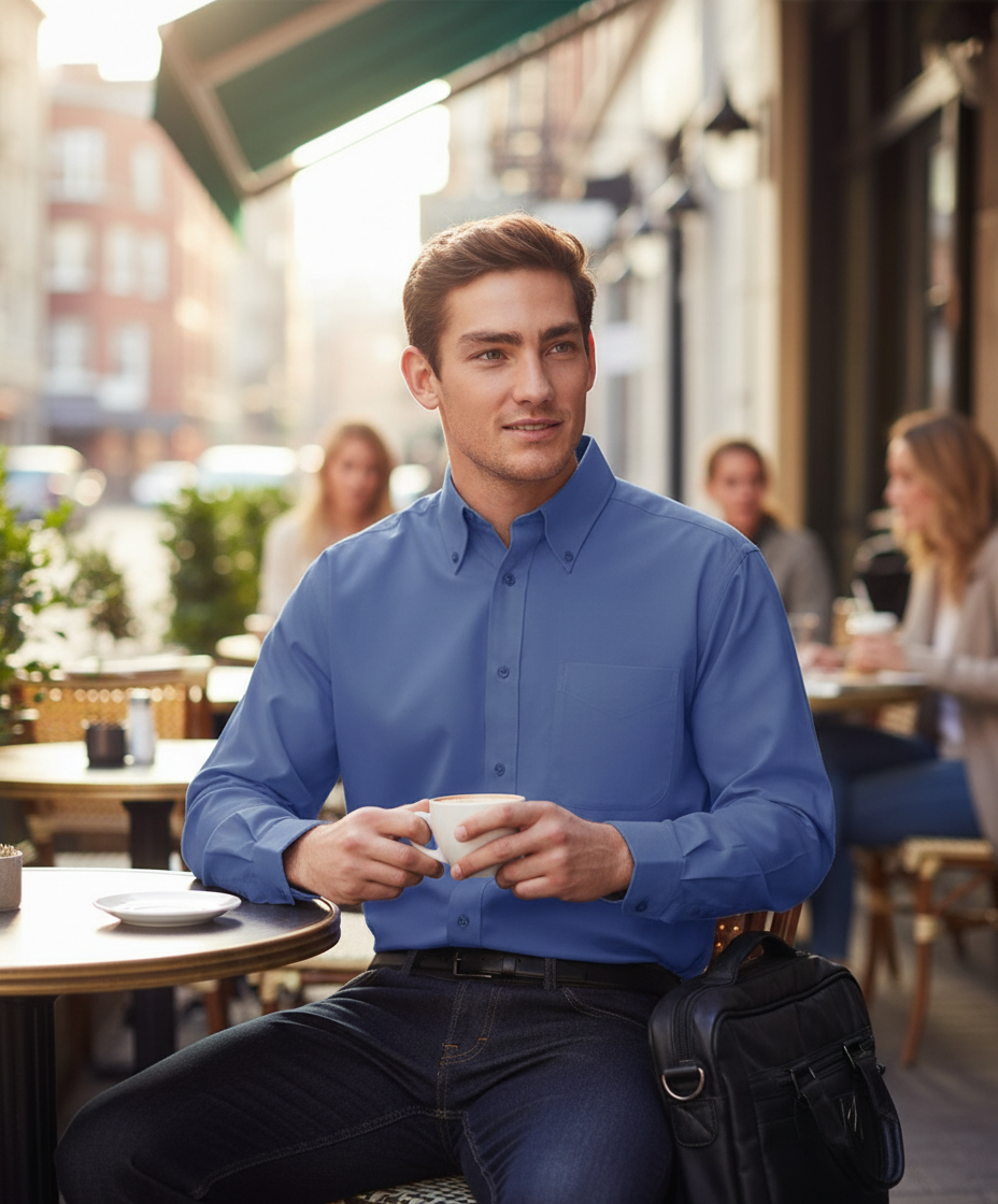 Ανδρικό μακρυμάνικο πουκάμισο B & C Oxford LSL Blue Chip