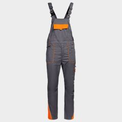 Περιγραφή: • δύο πλαϊνές τσέπες; • δύο πίσω τσέπες; • μία τσέπη στο δεξί μηρό; • μία τσέπη στο στήθος με φερμουάρ; • κρίκος εργαλείου • ελαστικό κούμπωμα στη μέση; • ελαστικές, ρυθμιζόμενες τιράντες; • κούμπωμα από αριστερά και δεξιά με κουμπιά. Υλικό: 35% βαμβάκι/65% πολυεστέρας, 195 g/m²