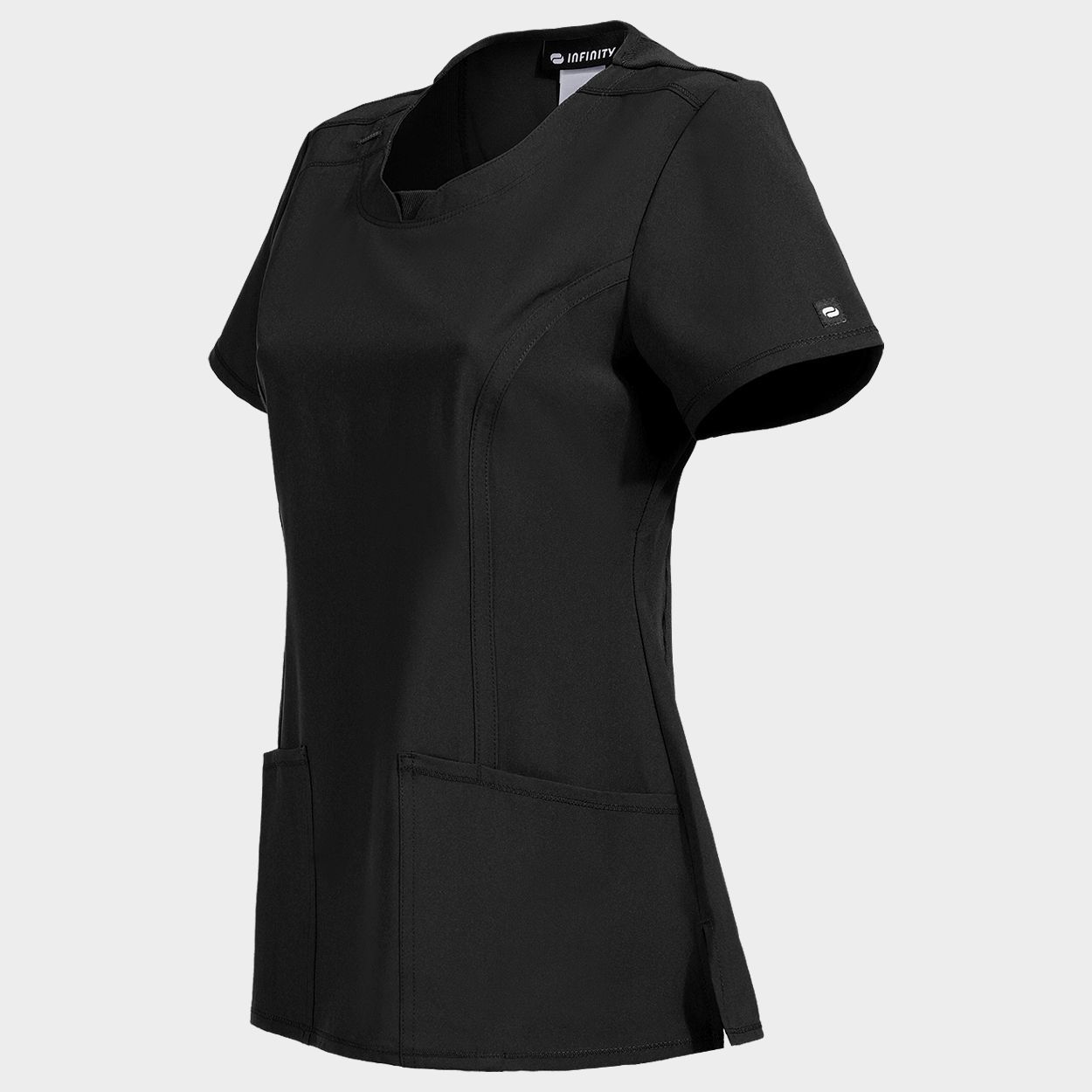 Γυναικεία ιατρική μπλούζα με στρογγυλή λαιμόκοψη και αντιμικροβιακή επεξεργασία, που παρέχει πρόσθετη προστασία και φρεσκάδα όλη την ημέρα. Μέρος της συλλογής Cherokee Infinity, που συνδυάζει μοντέρνο σχεδιασμό και πρακτικότητα.