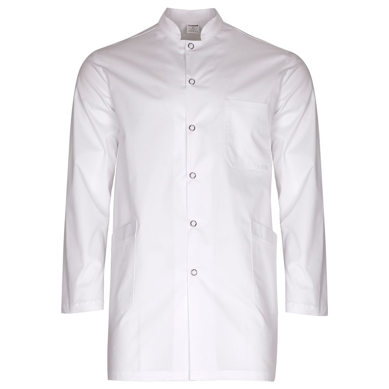 Ανδρική εφαρμοστή ποδιά με μακριά μανίκια και στρατιωτικό γιακά. Δυνατότητα στερέωσης των μανικιών με κουμπί tic-tac. Κλείσιμο με κουμπιά tic-tac. Μία πάνω αριστερή τσέπη με επιπλέον παξιμάδι για σήμα, δύο κάτω τσέπες.