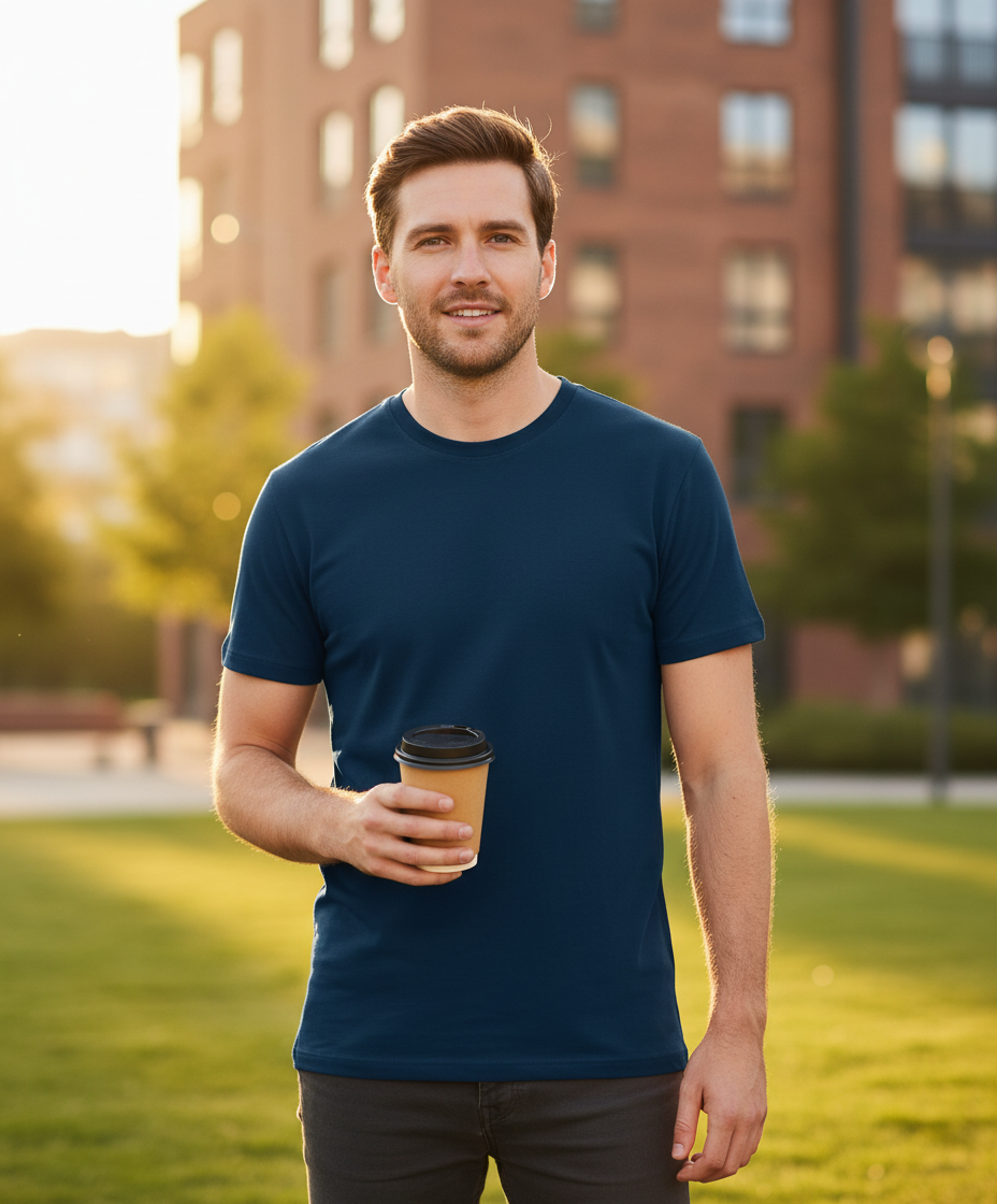 Κοντομάνικο μπλουζάκι με λαιμόκοψη κανονικής εφαρμογής. Κατασκευασμένο από ανθεκτικό και μακράς διάρκειας ύφασμα από μείγμα βαμβακιού και πολυεστέρα. Ελαστική λαιμόκοψη με ραβδώσεις για άνετη εφαρμογή. Διπλή ραφή στο λαιμό, τα μανίκια και το κάτω μέρος του στρίφωματος για πρόσθετη αντοχή και ανθεκτικότητα. Εσωτερική ταινία από ώμο σε ώμο που ενισχύει τη δομή του και διατηρεί το σχήμα του. Κατάλληλες μέθοδοι σήμανσης: μεταξοτυπία, εκτύπωση μεταφοράς, εφαρμογή βινυλίου, κέντημα, ραφή. Ιδανικό ως ρούχα εργασίας, διαφημιστικά ρούχα και σχολικές στολές.