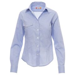 Γυναικείο εφαρμοστό, βαμβακερό πουκάμισο με γιακά σε ιταλικό στυλ. Τσέπη στο στήθος με καπάκι και κουμπί, θήκη χημικών. ΥΛΙΚΟ: 100% βαμβάκι ΒΑΡΟΣ: 130 g/m2