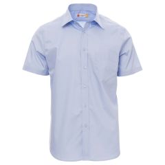 Ανδρικό εφαρμοστό, βαμβακερό πουκάμισο με κοντό μανίκι και γιακά σε ιταλικό στυλ. Μια τσέπη στο στήθος με ένα καπάκι και ένα κουμπί, μια θήκη για στυλούς. ΘΕΜΑ: 100% βαμβάκι
